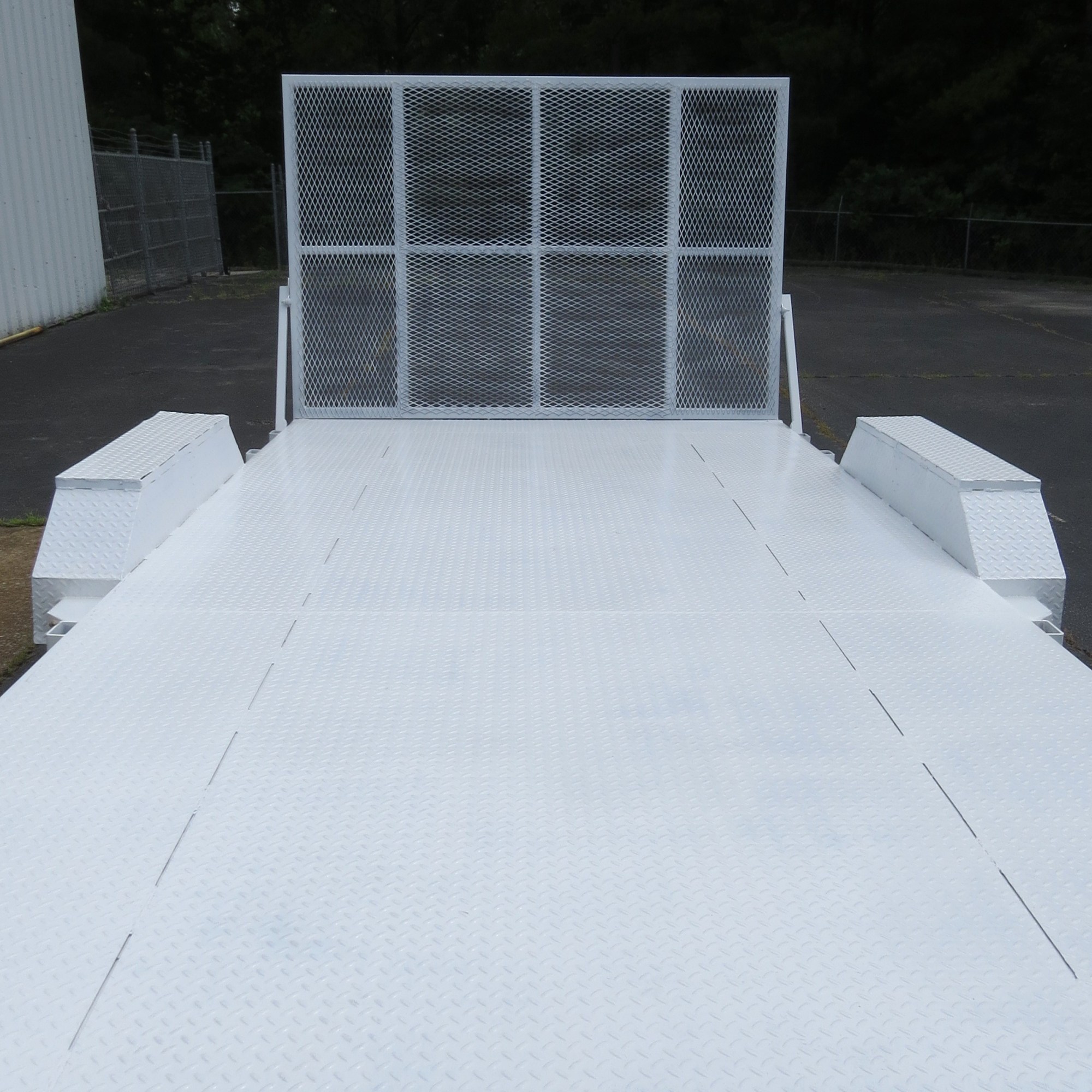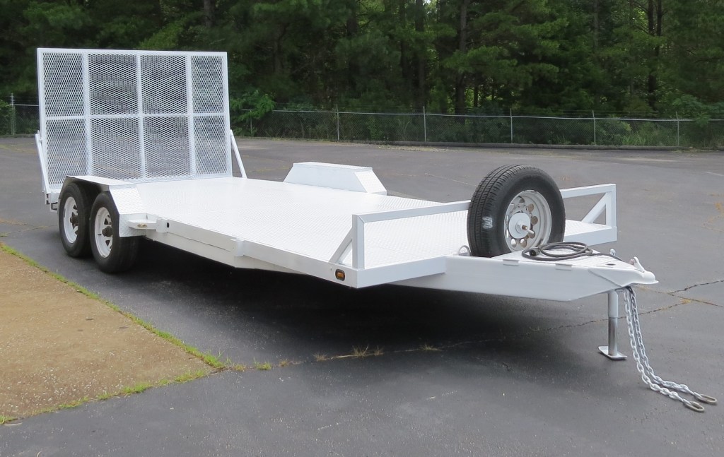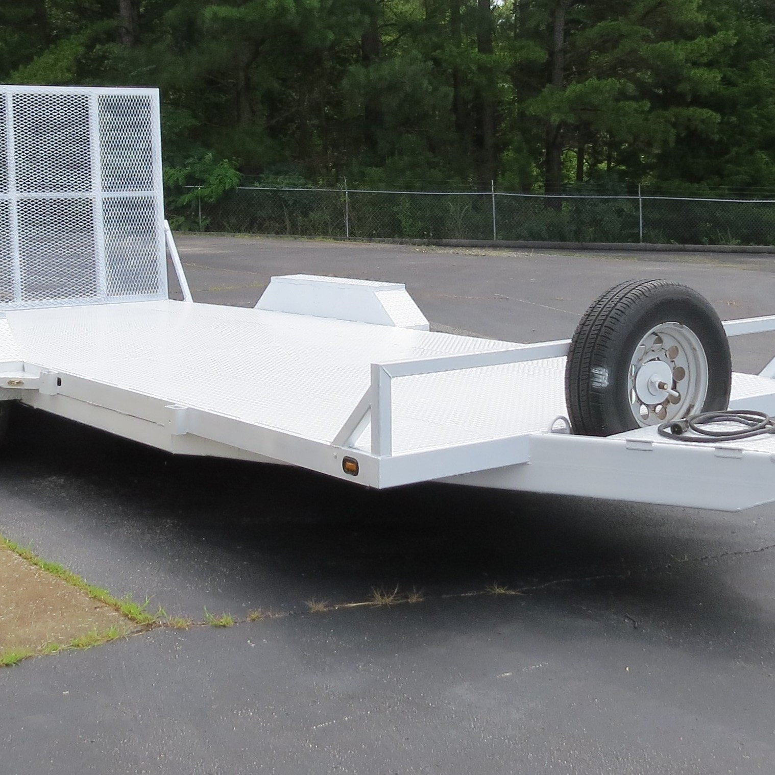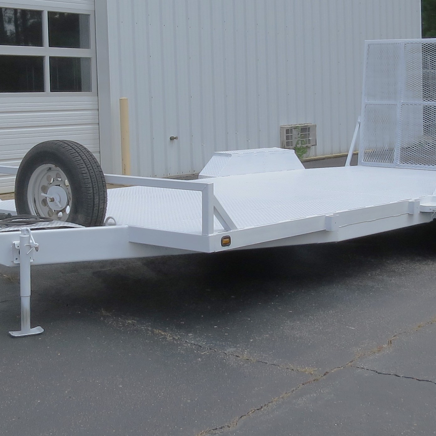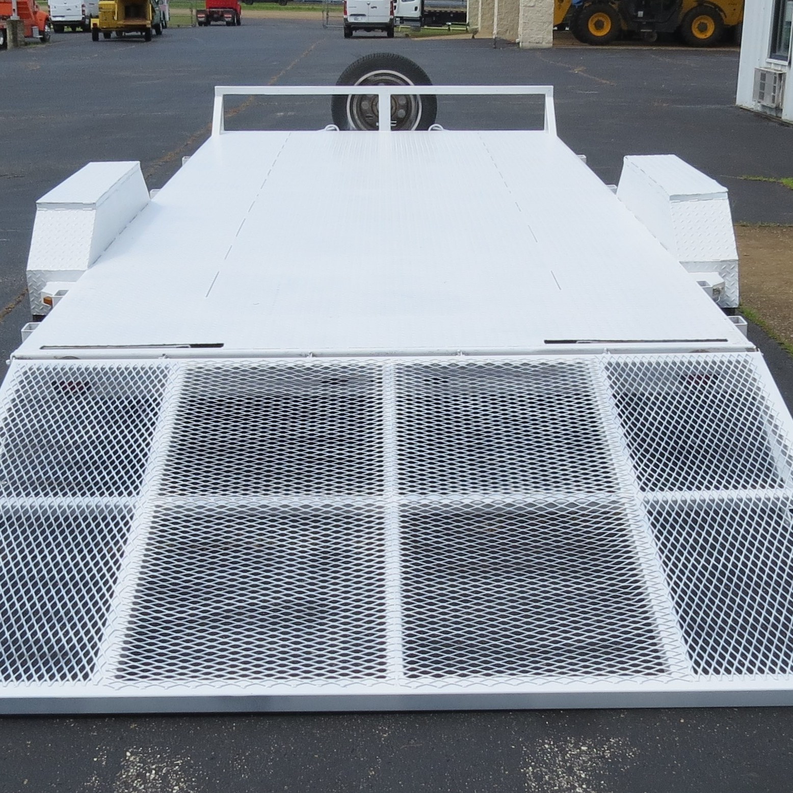 18 ft Steel Diamond Plate Deck, Tandem Axle, Heavy Duty Wrap Around Tongue, Steel Fenders, 2-5/16″ Ball, Chain Storage Bin On Tongue, Drop Expanded Metal Loading Ramp (will load a normal car), Electric Brakes, Steel Rims With Good Tires, Spare Tire With Holder, Fresh Paint, State Issued VIN, Comes With Title.