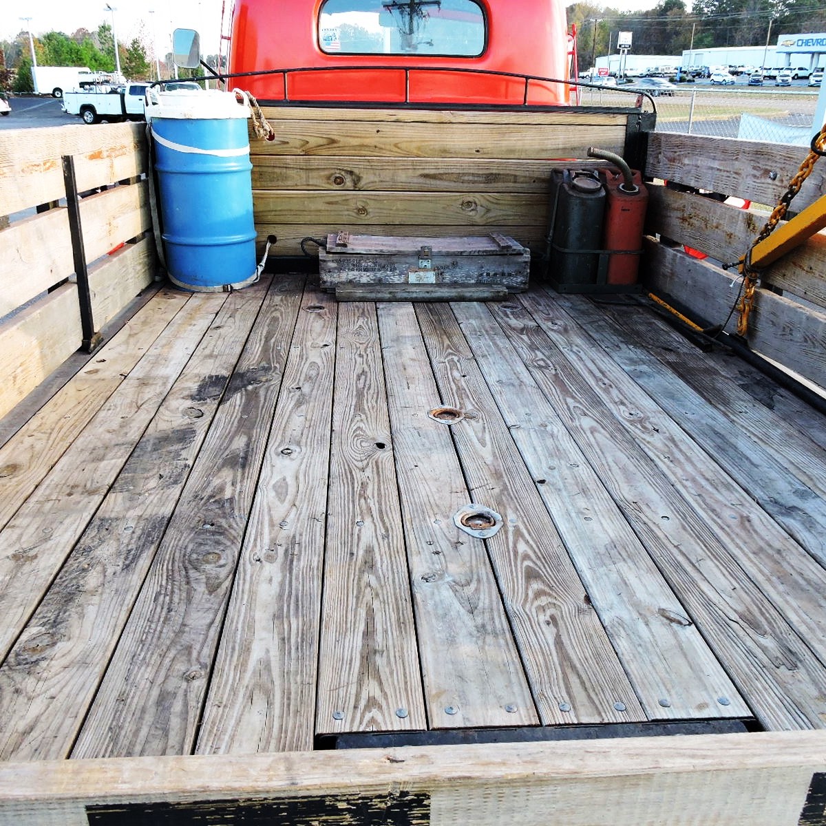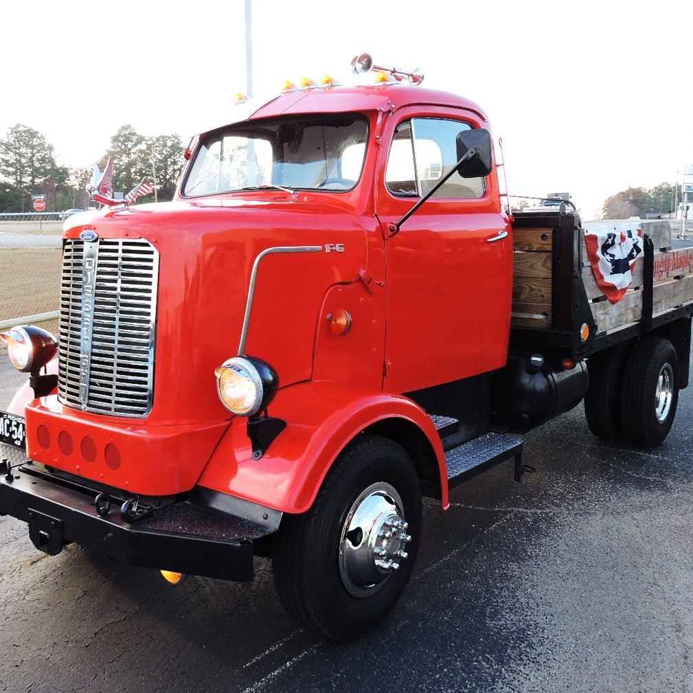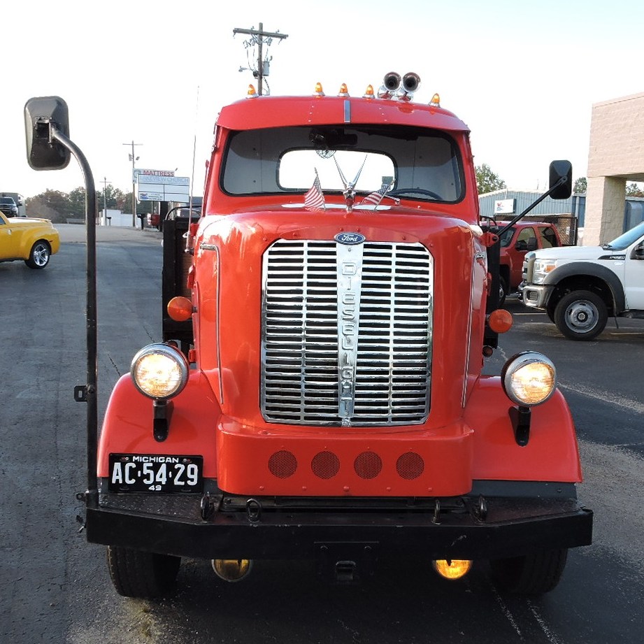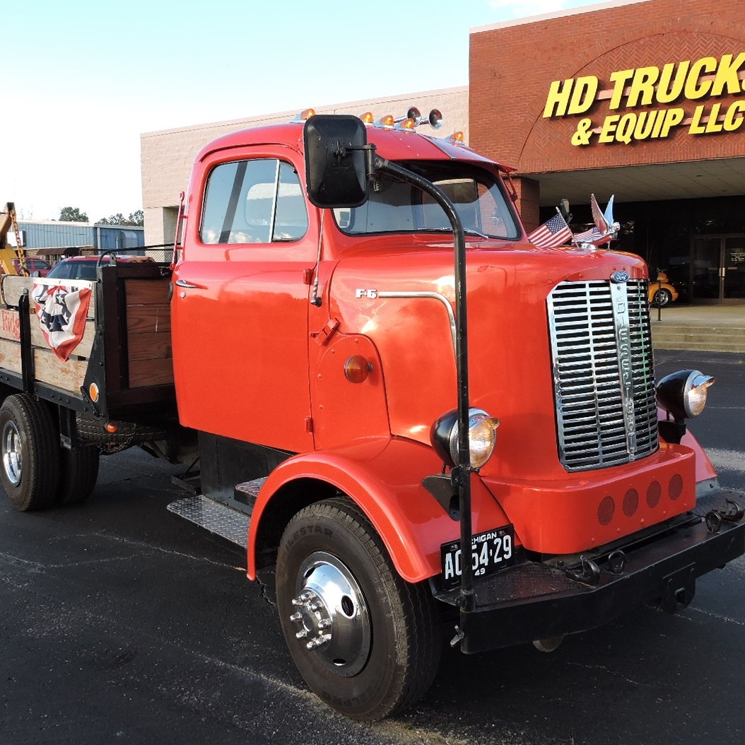 1949 FORD F6 – – CAB OVER – – FLATBED ……. Super Solid, Rare, Running Truck. Cab Mounted To Silverado 3/4 Ton Chassis. Retained Virtually All Of The Original Cab Characteristics. Chassis Retained The 350 Chevy Motor, Auto Transmission, Full Length Quiet Exhaust, Independent Front Suspension, Heavy Duty Power Brake System, Power Steering, & Holley Carb. The Hood Is The Original Tilt Hood, The Battery Is In The Original Side Compartment, The Dash Is Original and Complete. The Gauges Are Upgraded And All Functional Except For The Speedometer. The Auto Transmission Utilizes A Modern Floor Shifter. All The Glass Is Good and Fully Functional, Including Side Door Wing Vents. The Headliner, Custom Exterior Sun Visor, Driver Side Interior Sun Visor and Wipers Are All Functional. The Truck Features A Custom Steel Bed With Wood Decking, Side Boards, Receiver Hitch, An Aftermarket Trailer Brake Controller. and A Manually Operated Hydraulic Crane. The Tires Are Good and Include Stainless Steel Simulators. The Truck Drives Very Well.