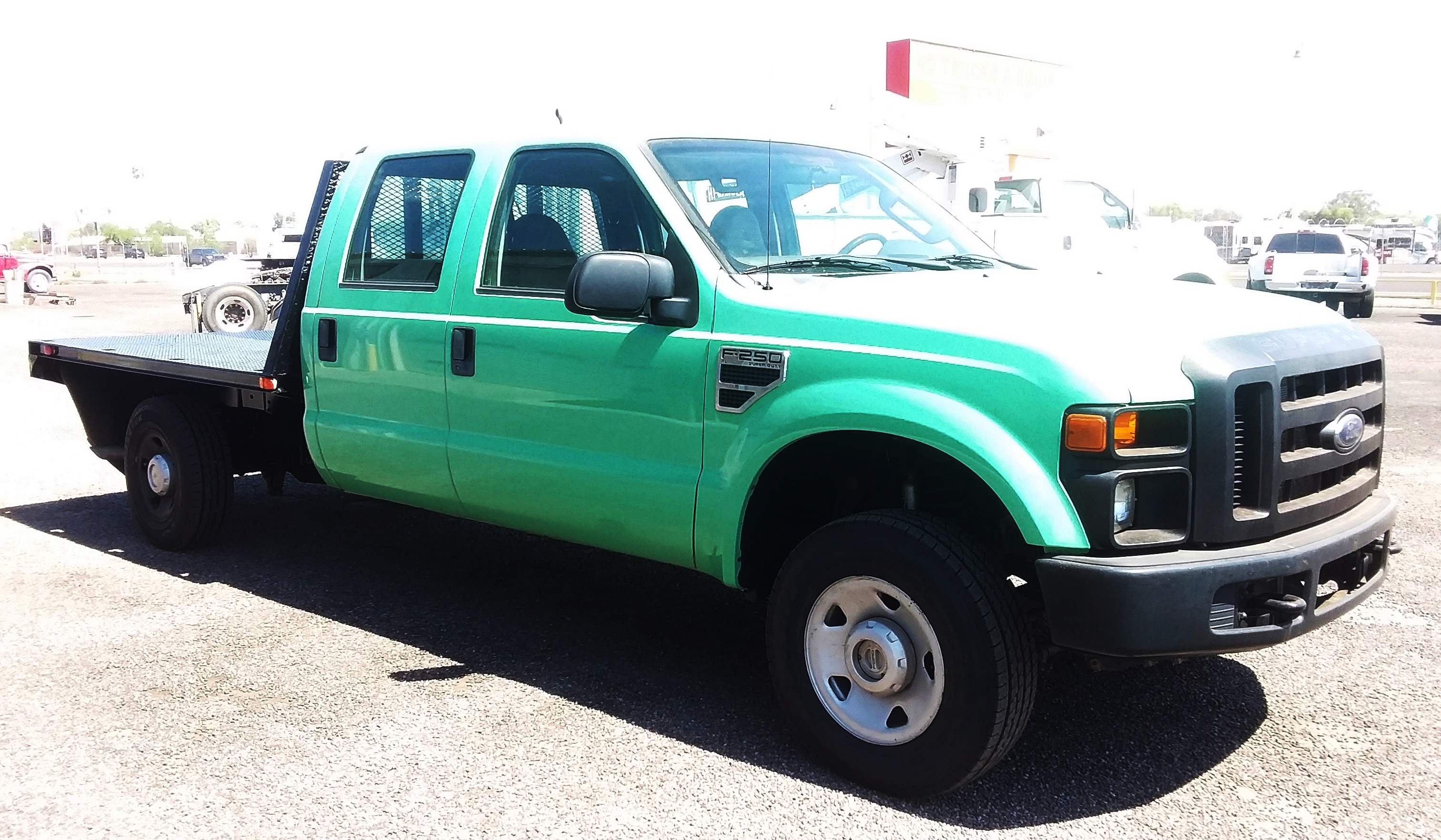 2009 FORD F250 CREW CAB 4X4 FLATBED . . . 5.4 Gas V8, Auto, AC, Cruise Control, 6 Pass Seating, Factory AM/FM/CD Sound System, Electronic 4X4 Shift, Lock Out Front Hubs, Front Tow Hooks, 8′ 6″ All Steel Flatbed Deck, Recessed Gooseneck Ball, Headache Rack, Receiver Hitch, Very Clean Cab, All Brand New Tires ( literally 10 miles ), Only 65,000 Federal Owned and Maintained Miles, Located In Henderson, Tenn