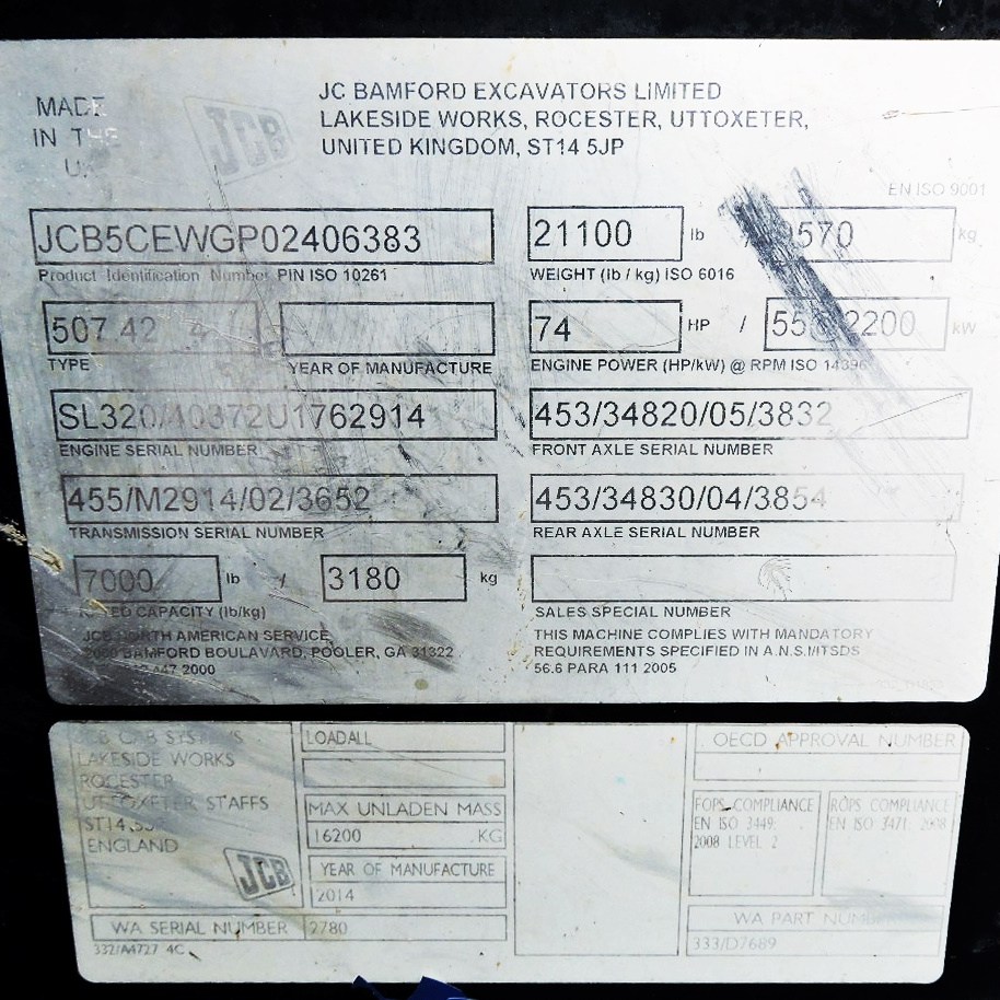 Year – 2014 . . . Make – JCB . . . Model – 507-42