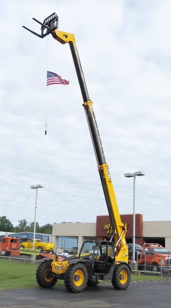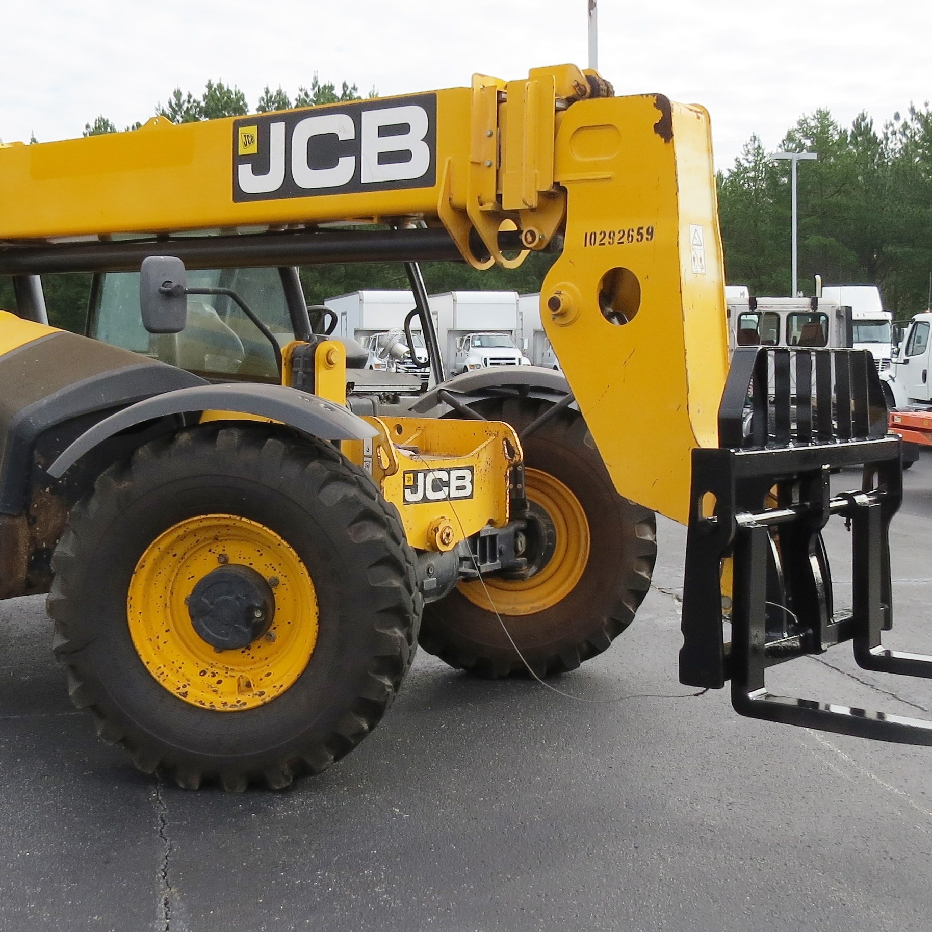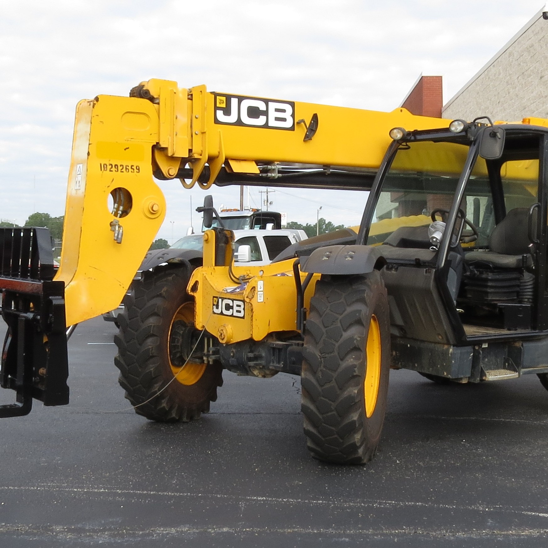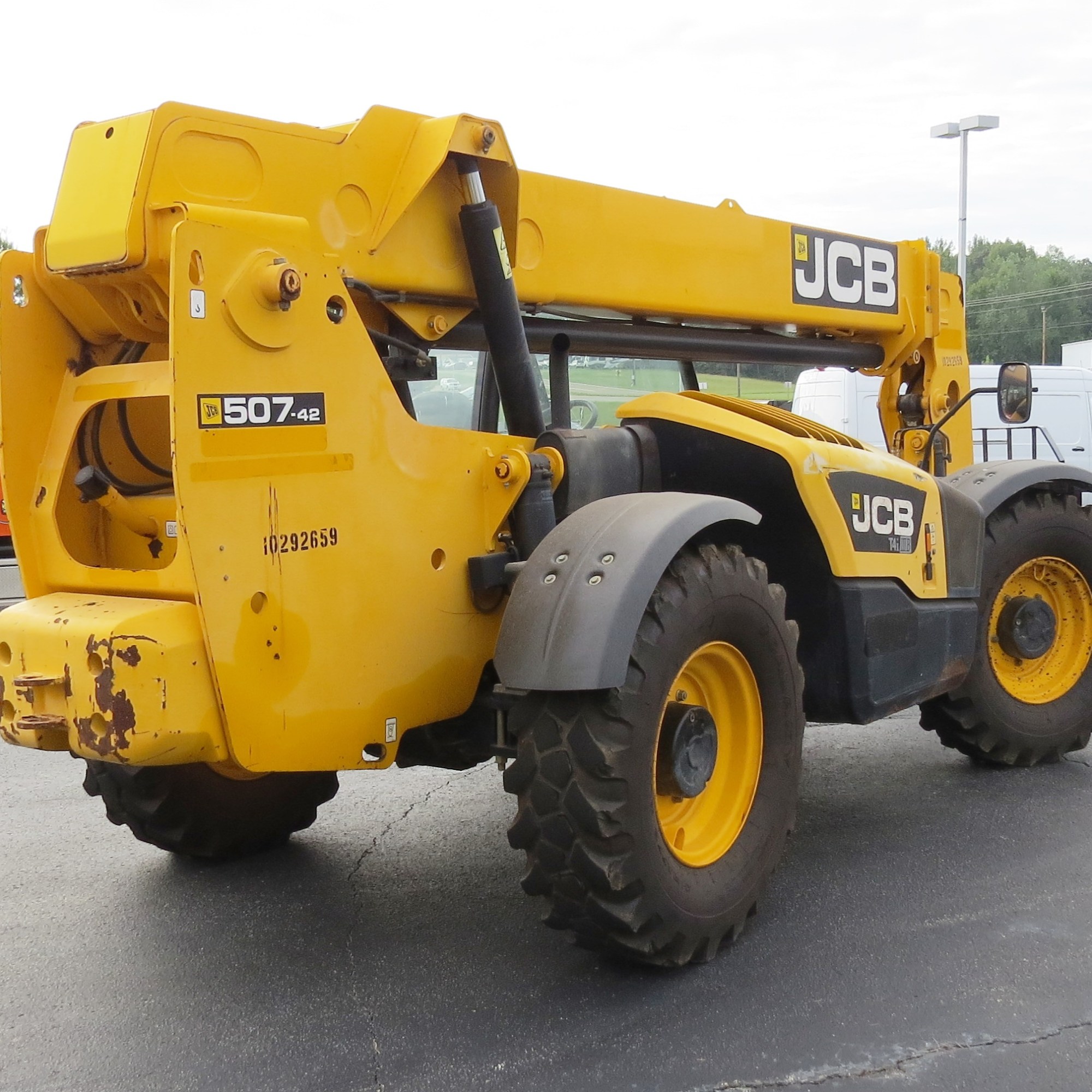 2014 JCB 507-42 TELEHANDLER … Very Clean Southern Unit, 74 HP Diesel Motor, 4 Speed Transmission With Shuttle Shift, Steering Can Be Set For Front Only-All Wheel- or Side “Crab” Steering, 7,000 lb Lift Capacity, 42 ft Reach With 1 Stationary And 2 Extending Sections, Forks Tilt, Forks On Quick Release, Aux Attachment Hyd Couplers On Stick, Side Grade Leveling, Steel Cab Drop Protection, Very Good Seat, Front And Rear Work Lights, Roof Beacon, Only 3700 Hours …
