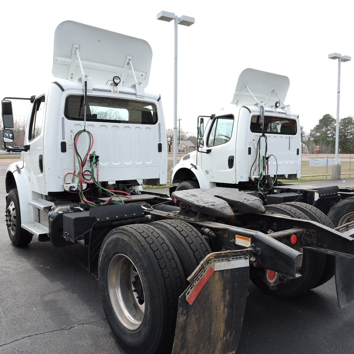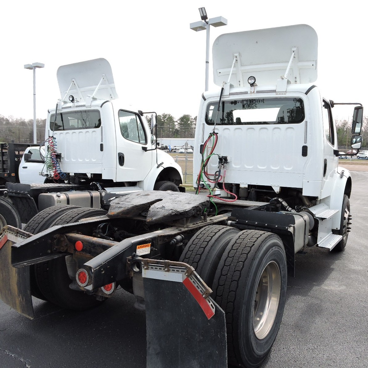 2015 FREIGHTLINER M2 106 SINGLE AXLE TRACTOR, ALL THE RIGHT STUFF .. 270 HP – 9 Liter Cummins, Auto Trans, 5.29 Final Axle Gears, AC, Power Windows Both Sides, Power Door Locks, Air Ride Suspension, Air Ride Dr Seat, Air Ride Cab, Sound System, Chrome Grill And Front Bumper, Air Brakes, 30K GVWR, Rear Work Light, Roof Top Air Foil, Steps And Catwalk On Frame, Very Good Tires, Alloy Wheels, Horizontal Exhaust Under Frame, Only 53,000 Miles