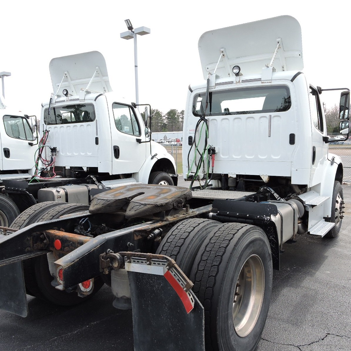 HUGE PRICE DROP! — 2015 FREIGHTLINER M2 106 SINGLE AXLE TRACTOR, ALL THE RIGHT STUFF .. 270 HP – 9 Liter Cummins, Auto Trans, 5.29 Final Axle Gears, AC, Power Windows Both Sides, Power Door Locks, Air Ride Suspension, Air Ride Dr Seat, Air Ride Cab, Sound System, Chrome Grill And Front Bumper, Air Brakes, 30K GVWR, Rear Work Light, Roof Top Air Foil, Steps And Catwalk On Frame, Very Good Tires, Alloy Wheels, Horizontal Exhaust Under Frame, Only 97,000 Miles