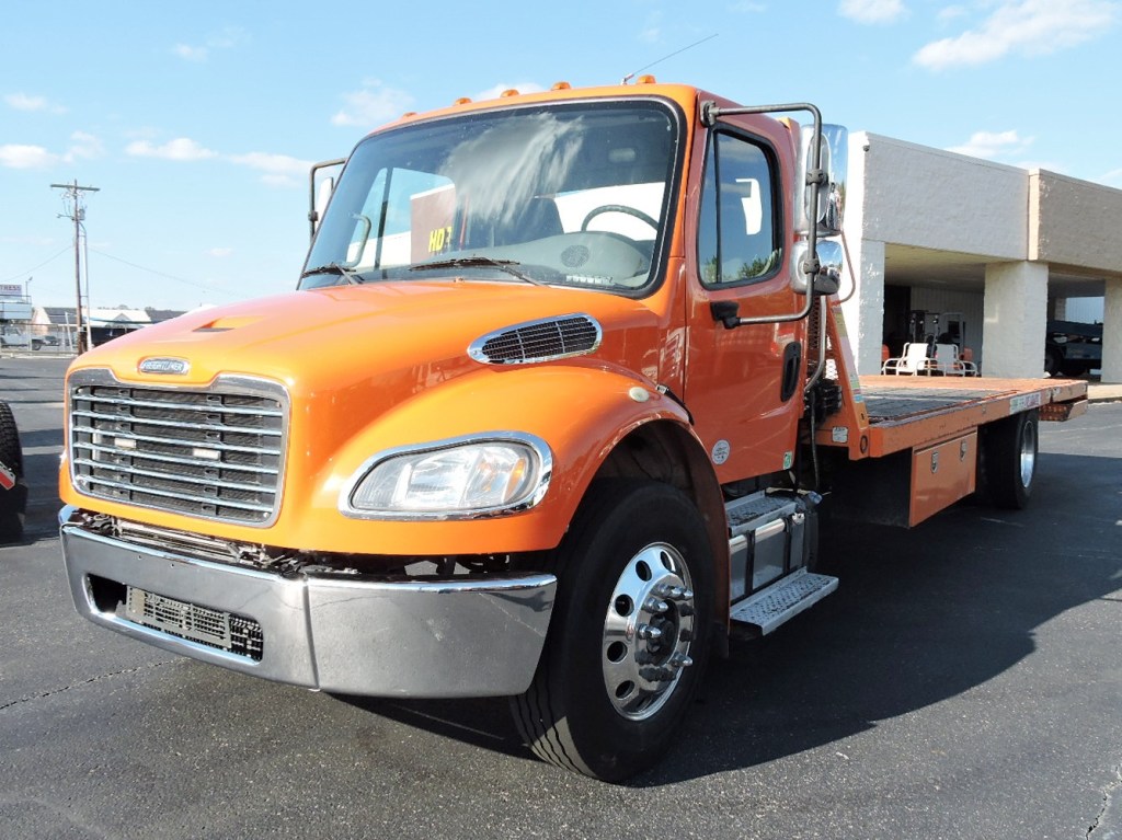 2016 FREIGHTLINER M2 – HYDRATAIL DOVE TAIL HAULER – – – Cummins 6.7 Turbo Diesel , Allison Auto Transmission, Factory AM/FM Phone Ready Sound System, Air Ride Driver Seat, Tilt Wheel, Cruise Control, Rear Vision Camera (may require repair), Air Ride Suspension With Dump, Engine Brake, Xtreme EZ-18 PTO Driven Power Hydratail Dove Tail Hauler Body, 18,000 lb Bed Capacity, 10,000 lb Tail Lift Capacity, 102″ Wide and 23 ft Of Usable Deck Including 8 ft Dove Tail Not Including Winch Area, Receiver Hitch, 15 ,000 PTO Driven Winch, Light Bar, Dual Under Body Chain Boxes, Alloy Wheels, Good Tires, 33,000 lb GVWR, and ONLY 177,000 Miles