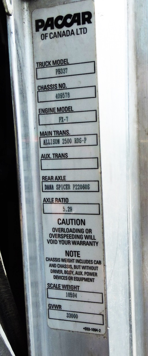 Engine – PACCAR PX-7 . . . Trans – AUTO . . . GVWR – 33000