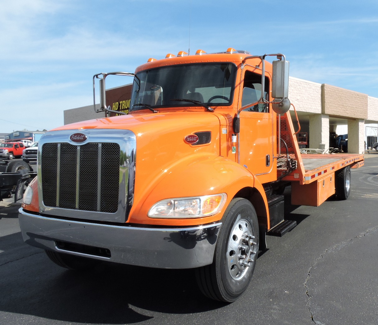 2017 PETERBILT 337 – HYDRATAIL DOVE TAIL HAULER – – – Paccar PX-7 Turbo Diesel , 6 Spd Allison Auto Transmission, Power Door Locks, Passenger Power Window, Factory AM/FM Phone Ready Sound System, Air Ride Driver Seat, Tilt Wheel, Cruise Control, Rear Vision Camera, Air Ride Suspension With Dump, Engine Brake, Xtreme EZ-18 PTO Driven Power Hydratail Dove Tail Hauler Body, 18,000 lb Bed Capacity, 10,000 lb Tail Lift Capacity, 102″ Wide and 23 ft Of Usable Deck Including 8 ft Dove Tail Not Including Winch Area, Receiver Hitch, 15 ,000 PTO Driven Winch, Light Bar (does not light), Work Lights, Dual Under Body Chain Boxes, Alloy Wheels, Good Tires, 33,000 lb GVWR, and ONLY 119,000 Miles With 4700 Hours Of Usage.