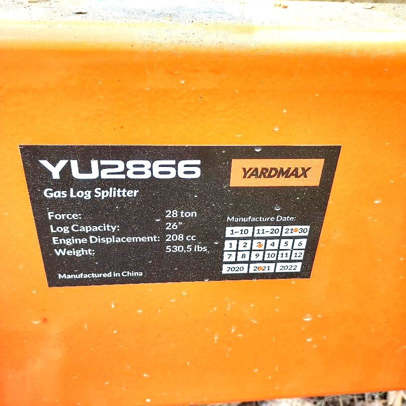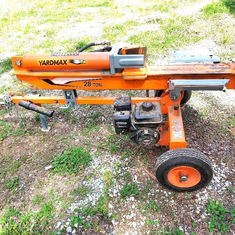 Yard MAX, 28 Tons Of Pressure. 208CC Briggs & Stratton CR950, Gasoline Powered. Recoil Start System. Heavy Machine – Weighs 530 lbs. Handles Logs Up To 26 Inches In Diameter. Full Beam Upright Splitter. Absolutely No Damage, Leaks, Etc. Operates Like New. Used Approximately 10 Times. Tongue Jack. Rubber Tires And Trailer Hitch For Towing To Job Sites. Stored Indoors Since New.